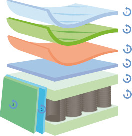 Colchón de muelles ensacados, único para un descanso óptimo y acompañarte durante toda la vida. Diseño exclusivo. Íntegramente fabricado en España.